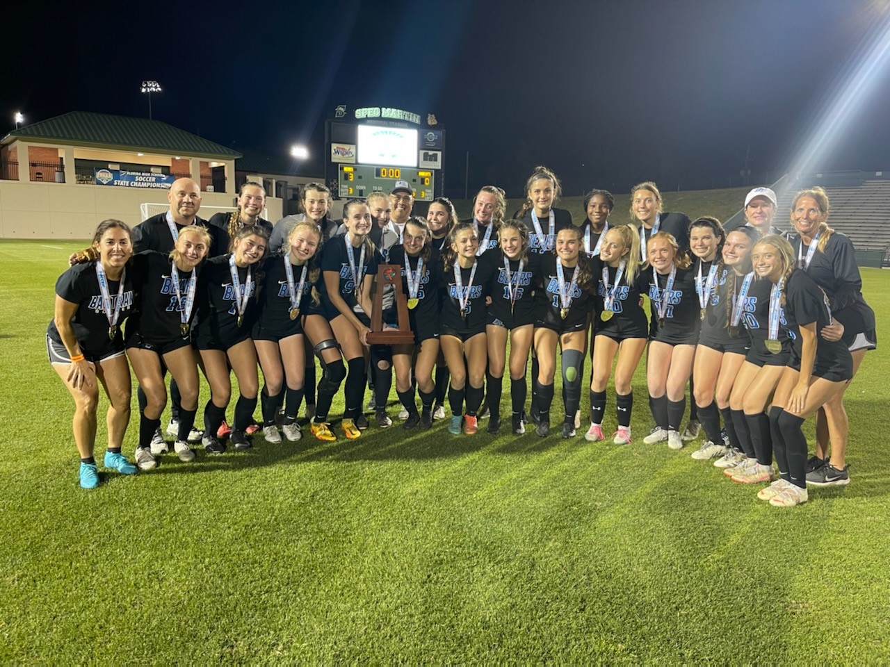 ST. JOHNS, Fla. — The Bartram Trail Bears girl’s soccer team, coached by Head Coach, Jen Rodriguez and assisted by Rita Mankin and Pual Slusarz were overwhelmed with excitement at how this season ended. The team won their first State Championship in 2020 and again in 2021 but then was upset in the regional semifinals in 2022 by Creekside. To be able to bounce back this year for the win, with this group of girls, of whom the 5 senior captains have been together since the first win in 2020, was a feeling that was indescribable!