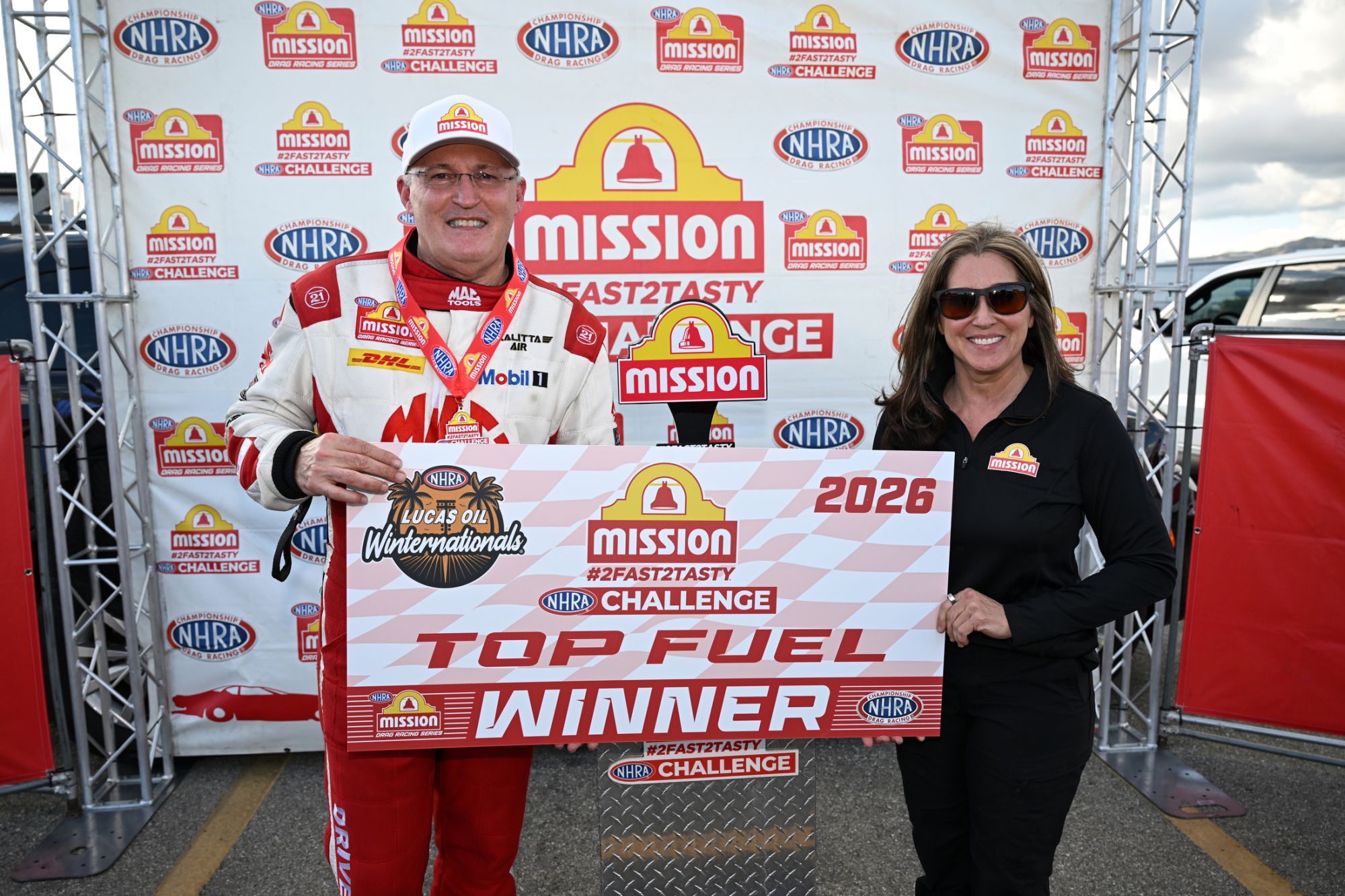In Pomona, Doug Kalitta continued his dominance in the Mission #2Fast2Tasty Challenge by winning for the second consecutive time, defeating Maddi Gordon. Matt Hagan and Dallas Glenn also emerged victorious in their respective categories. This event is part of the 66th annual Lucas Oil NHRA Winternationals and is the third of 20 races in the 2026 NHRA Mission Foods Drag Racing Series season. Kalitta currently leads the points, while Leah Pruett, Hagan, and J.R. Todd showcased strong performances during qualifying.