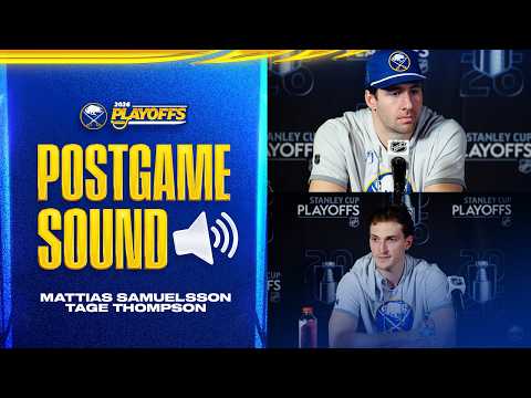 Buffalo Sabres forward Tage Thompson and defenseman Mattias Samuelsson talked to the media after a 4-3 win over the Boston Bruins in Game 1. Thompson talked about the team's mindset after trailing early in the game and how they were able to find success late in the game. Samuelsson discussed the goals scored by Thompson and the goal that he scored to take the lead late. Subscribe to the Buffalo Sabres YT Channel: https://bit.ly/2G1G8eT For More Sabres Action: https://bufsabres.co/2XAYg5m #BuffaloSabres #Sabres #NHL For more Sabres action: Sabres.com Follow us on X: twitter.com/BuffaloSabres Follow us on TikTok: https://bufsabres.co/TikTok Follow us on...